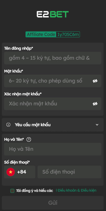 Khi tài khoản của bạn đã được xác minh, bạn có thể tiến hành đăng nhập vào E2BET bằng cách nhập tên đăng nhập và mật khẩu của mình. Sau khi đăng nhập, bạn sẽ được chuyển hướng đến trang chủ của E2BET, nơi bạn có thể bắt đầu khám phá các dịch vụ cá cược.